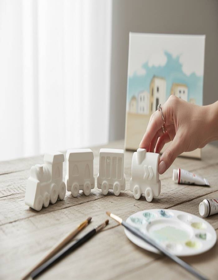 ✔️ Boyanabilir taş tozu tren ve vagon figürleri (5 adet)