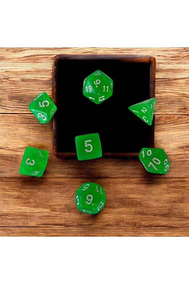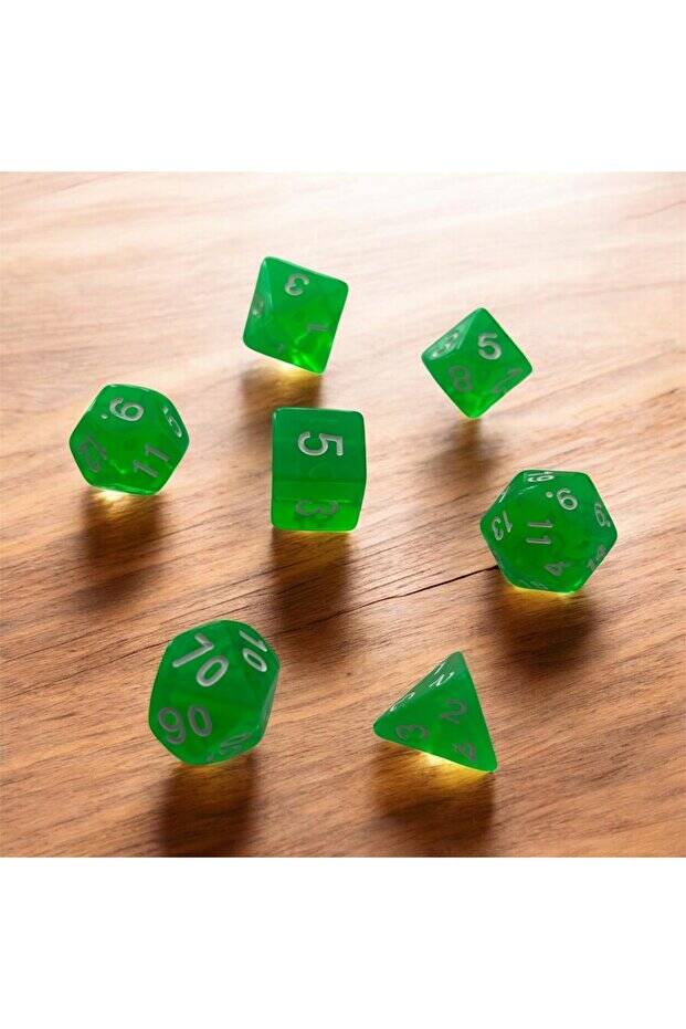 DND Frp Zar Seti 7li Set Dnd Zarı Dungeons And Dragons Masaüstü Oyun Zarı Parlak Yeşil