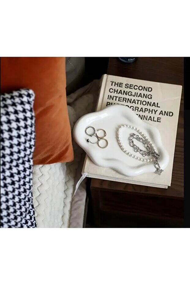 Taş tozundan üretilmiş dekoratif sunum tabağı, şık ve minimal tasarımıyla yaşam alanlarınıza estetik bir dokunuş katar. Dalgalı formu sayesinde takı, aksesuar, anahtar, mum veya kozmetik ürünlerinizi düzenli ve zarif bir şekilde sergilemenize olanak tanır.
