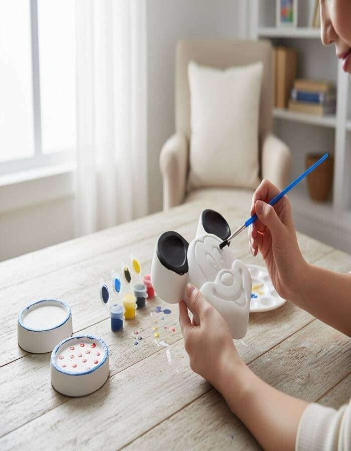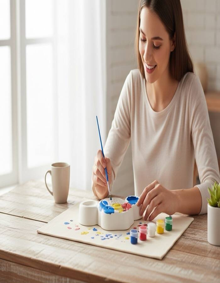Ürün taş tozundan üretilmiş olup boyamaya uygun pürüzsüz bir yüzeye sahiptir. Set içerisinde yer alan boyalar ve fırça ile kişisel tasarımlar oluşturabilir, tamamlandıktan sonra dekoratif obje olarak sergileyebilirsiniz.