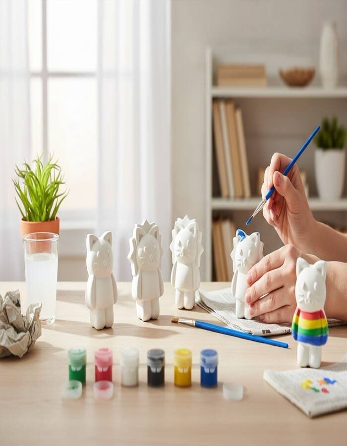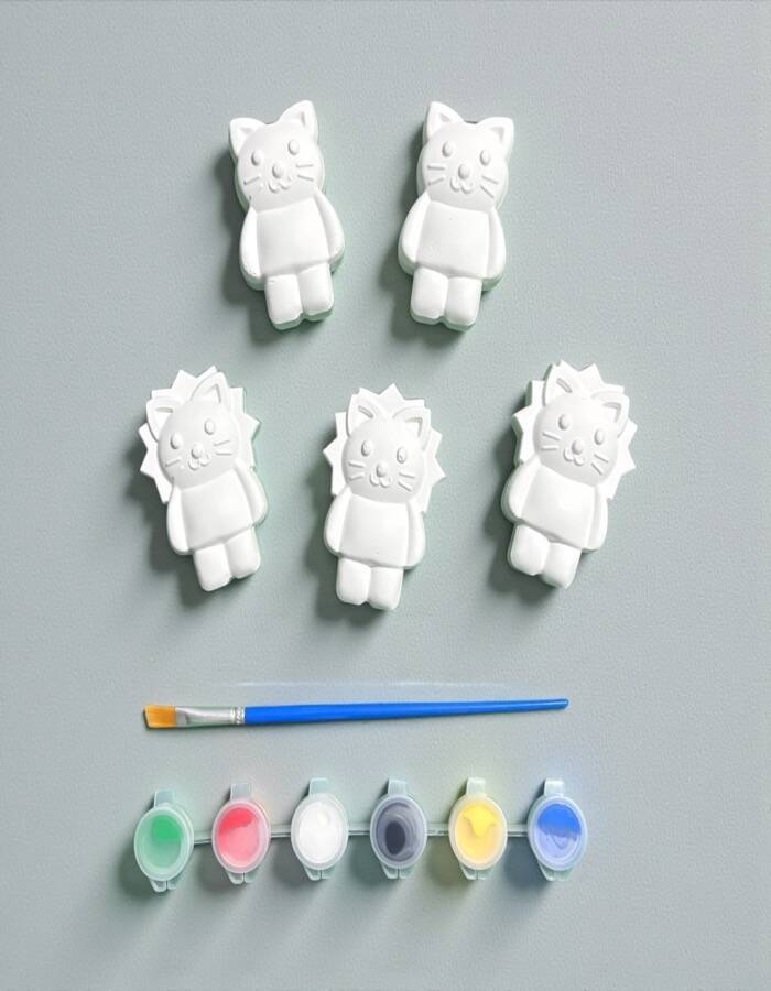 Sevimli tasarımıyla çocukların favorisi olacak Taş Tozundan El Yapımı Kedi Figürü Boyama Seti, hem eğlenceli hem de geliştirici bir boyama deneyimi sunar.