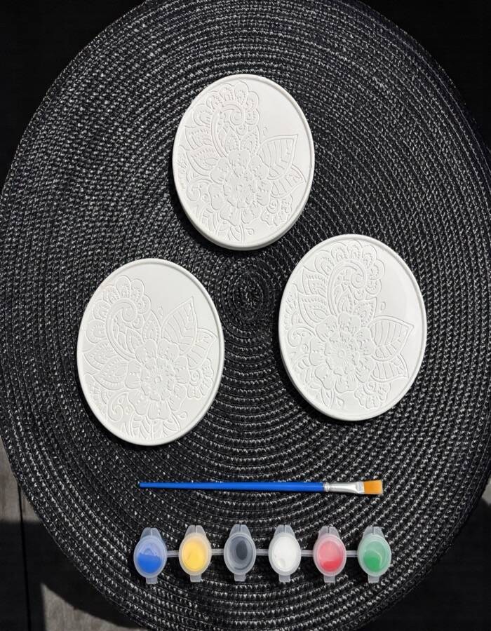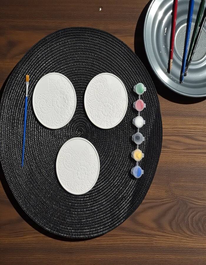 🧱 Taş tozundan üretilmiş 3 adet mandala desenli bardak altlığı