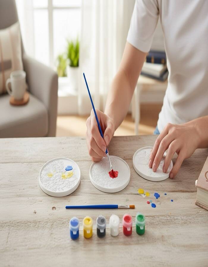 Boyama sonrası bardak altlığı, masa üstü veya dekoratif obje olarak kullanılabilir