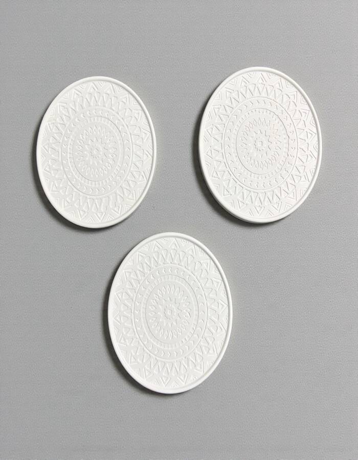 🧱 Taş tozundan üretilmiş 3 adet yuvarlak mandala figürü