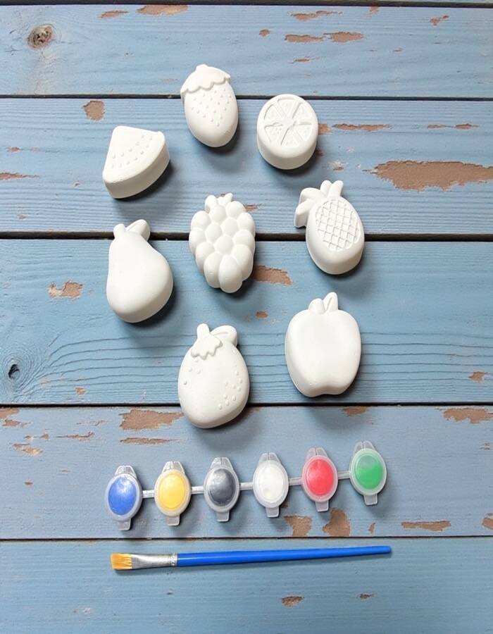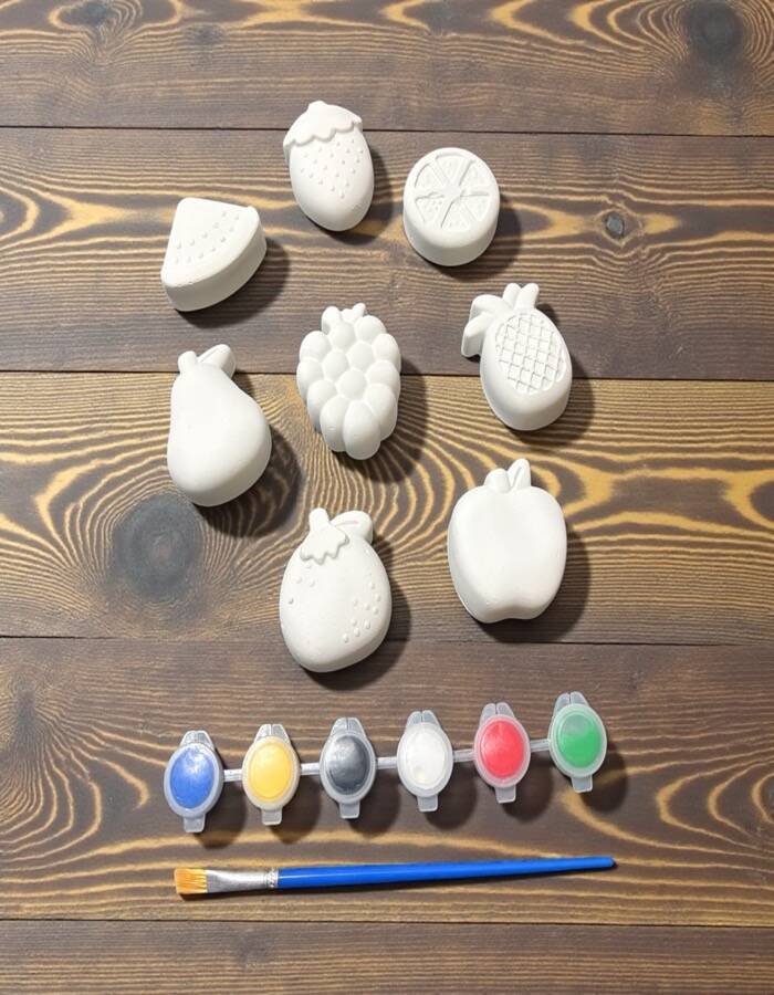 Taş tozundan üretilmiş bu meyve temalı boyama seti, çocuklar ve yetişkinler için hem eğlenceli hem de öğretici bir hobi deneyimi sunar.