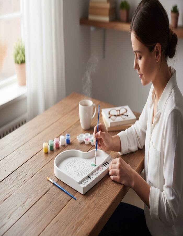 Boyama sonrası oda, masa veya raf dekoru olarak kullanılabilir
