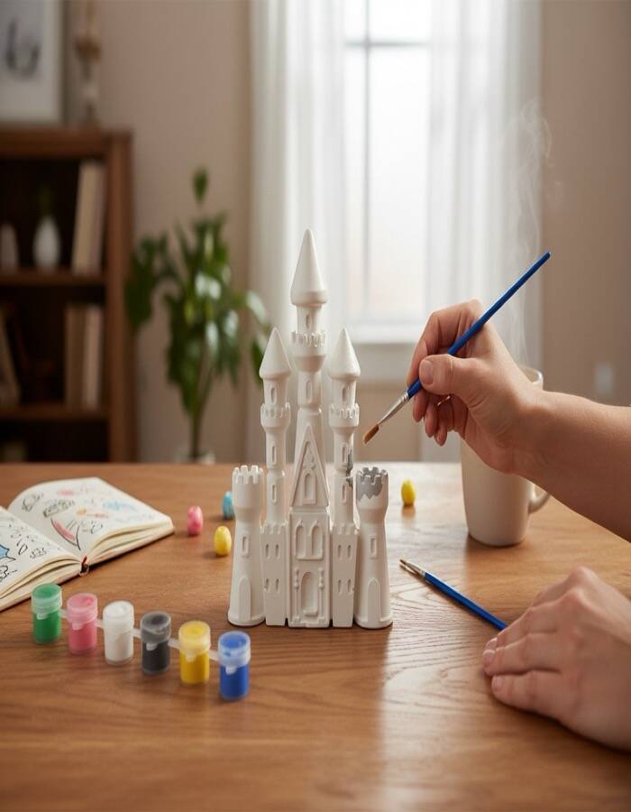 Hayal gücünü harekete geçiren Taş Tozundan El Yapımı Şato Boyama Seti, çocuklar ve hobi severler için keyifli bir boyama ve dekorasyon deneyimi sunar.