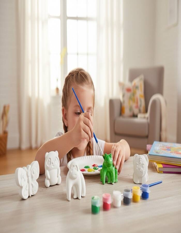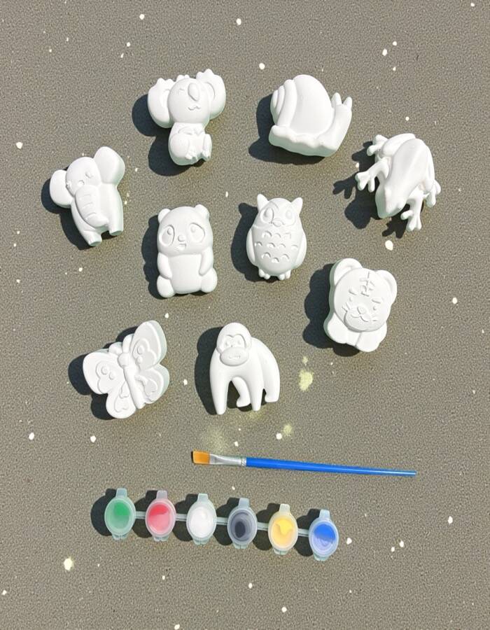 Çocukların yaratıcılığını destekleyen Taş Tozundan El Yapımı Sevimli Hayvanlar Boyama Seti, eğlenceli ve öğretici bir hobi deneyimi sunar.