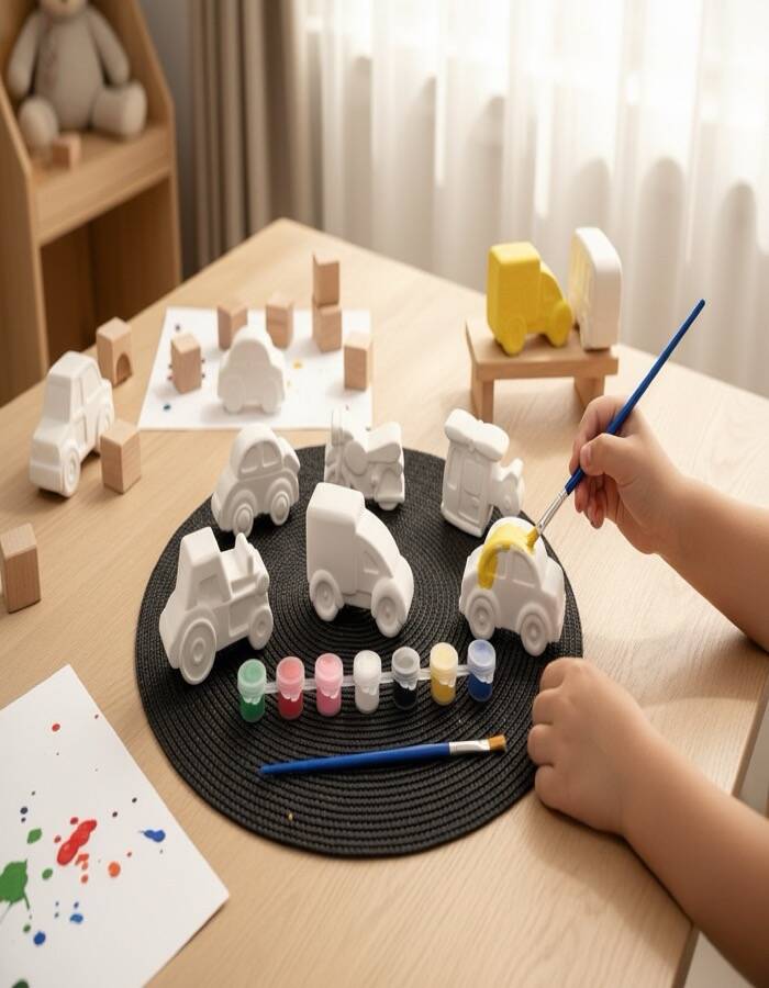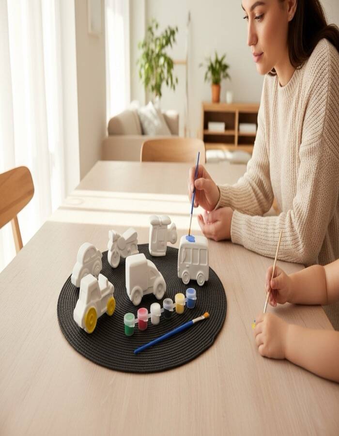 Çocukların yaratıcılığını destekleyen Taş Tozundan El Yapımı Araçlar Boyama Seti, hem eğlenceli hem de öğretici bir sanat deneyimi sunar.