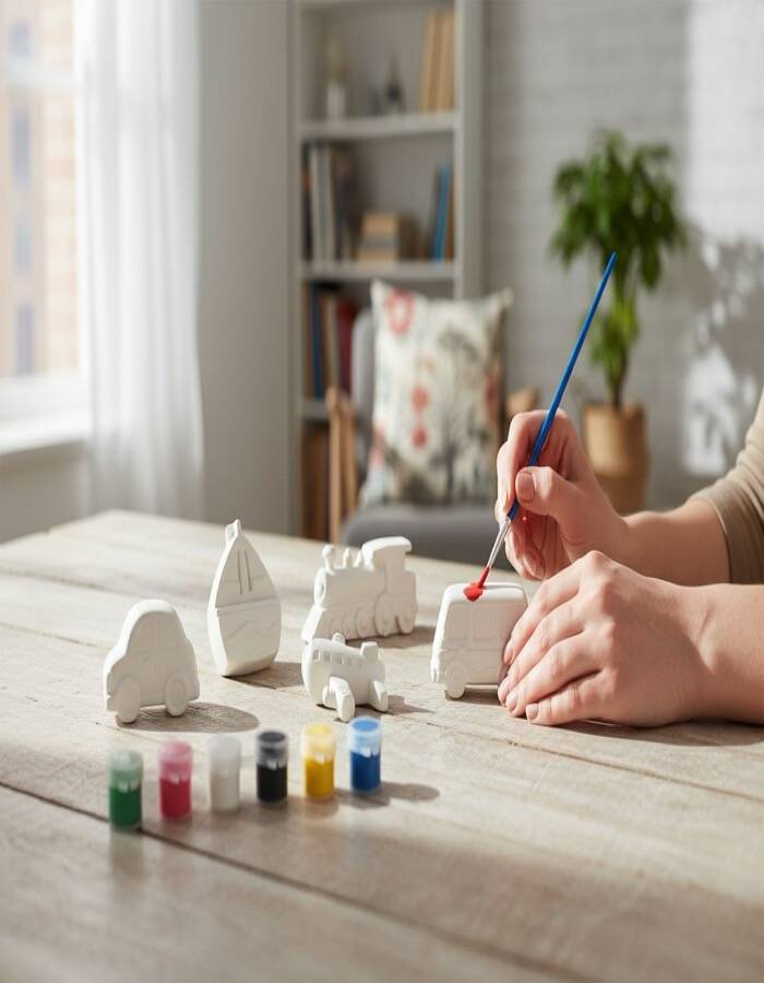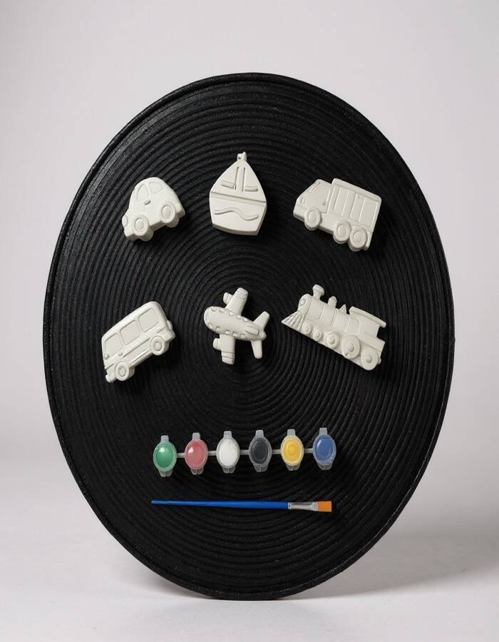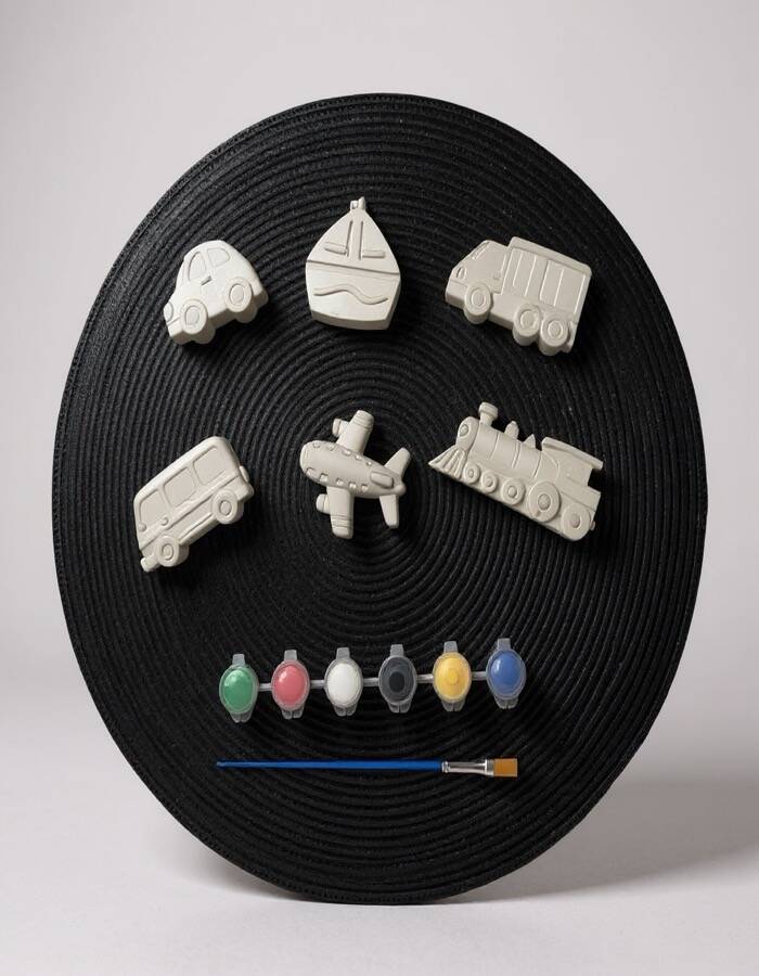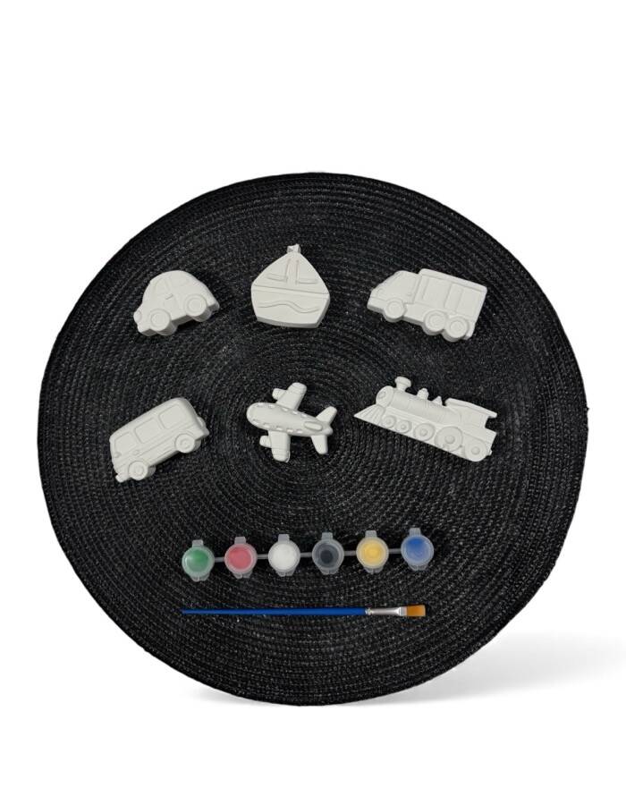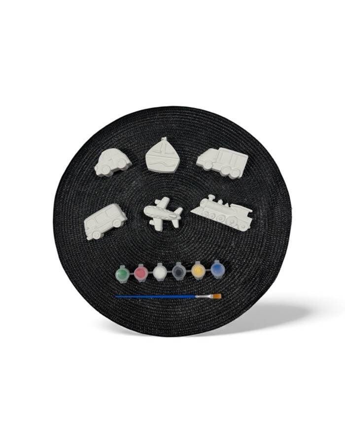 🧱 Taş tozundan üretilmiş ulaşım araçları figürleri (6 adet) (araba, kamyon, tren, uçak, gemi vb.)