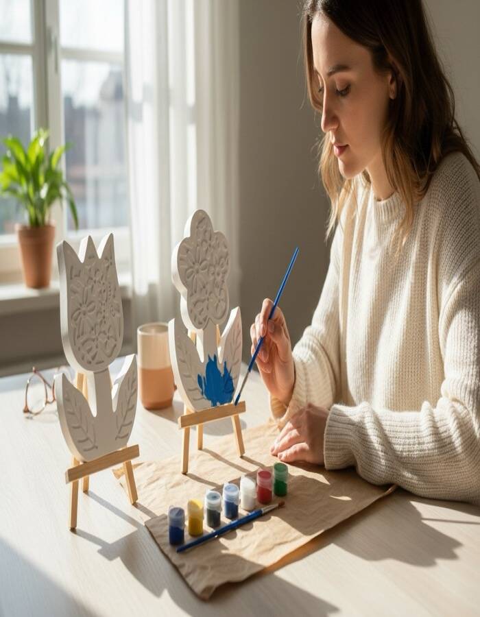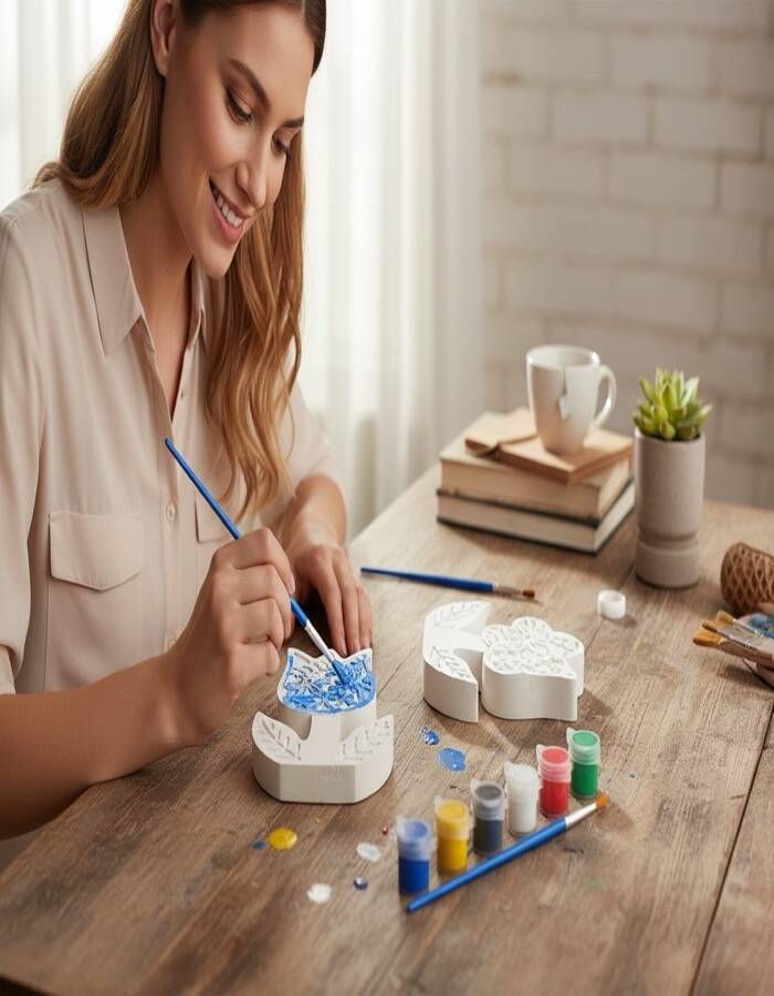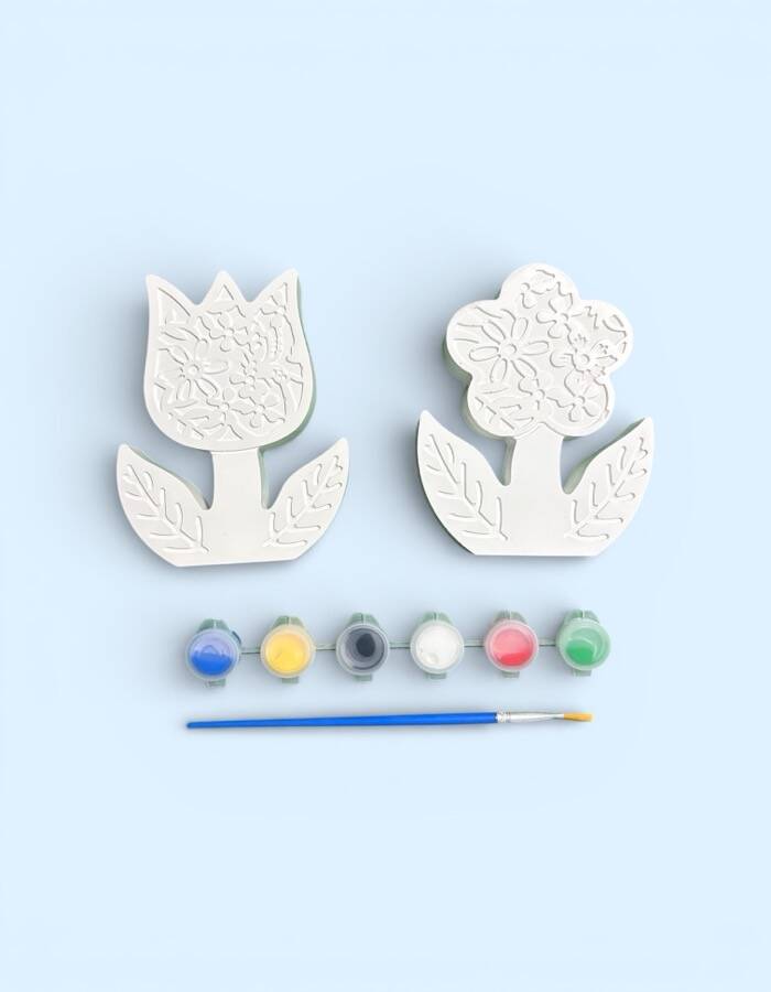 Doğadan ilham alan tasarımıyla Taş Tozundan El Yapımı Çiçek Boyama Seti, hem çocuklar hem de yetişkinler için keyifli ve yaratıcı bir boyama deneyimi sunar.