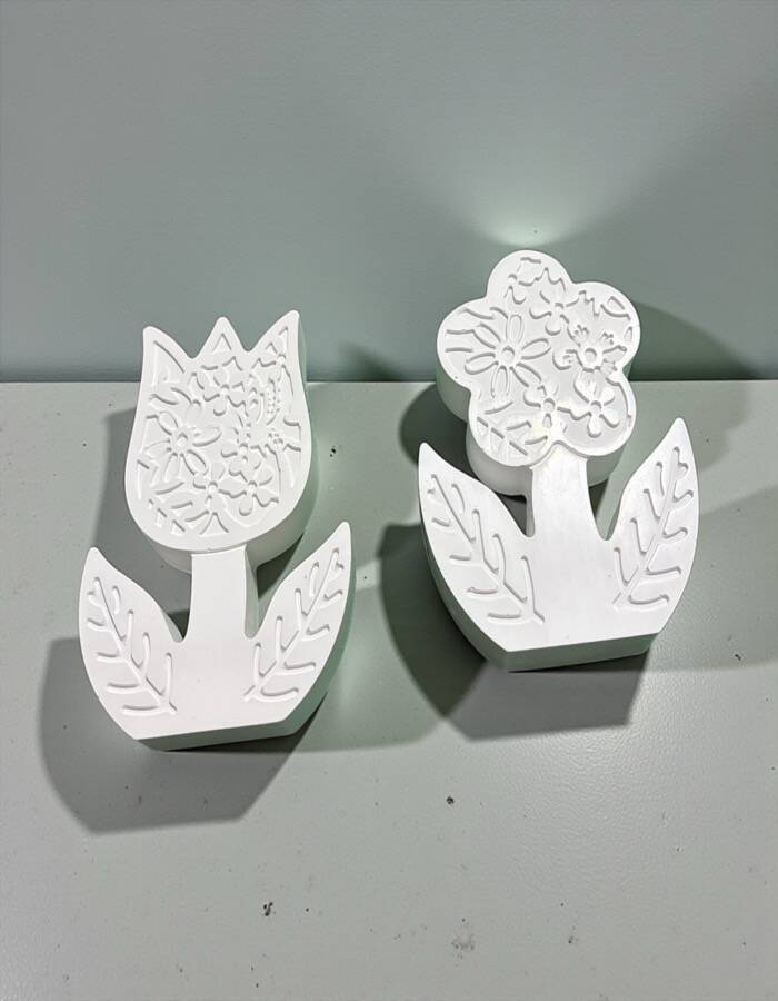 🧱 Taş tozundan üretilmiş çiçek figürleri (2 adet)