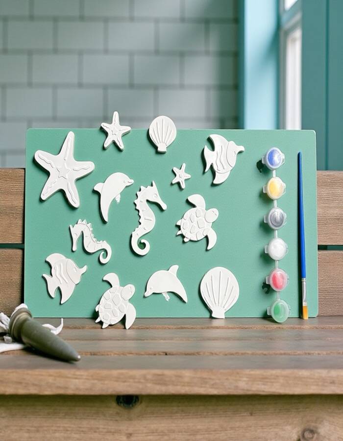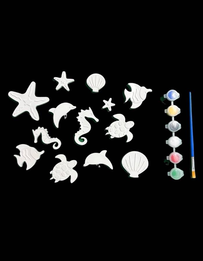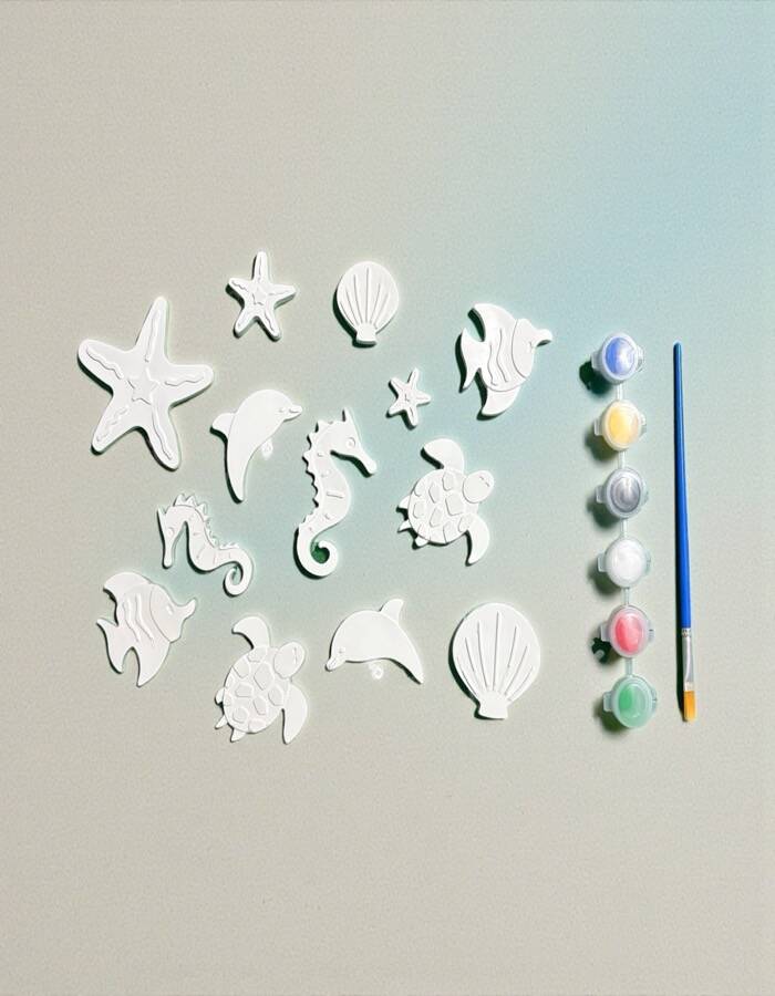 Deniz dünyasının sevimli figürleriyle tasarlanan Taş Tozundan El Yapımı Deniz Canlıları Boyama Seti, çocuklar için eğlenceli ve öğretici bir boyama deneyimi sunar.