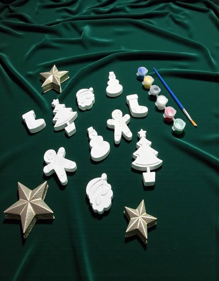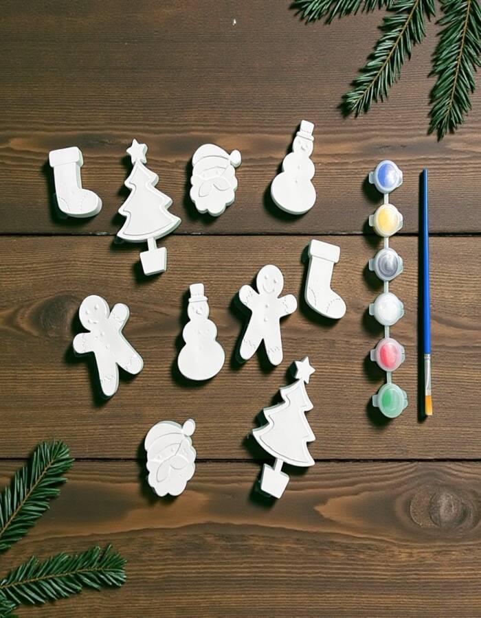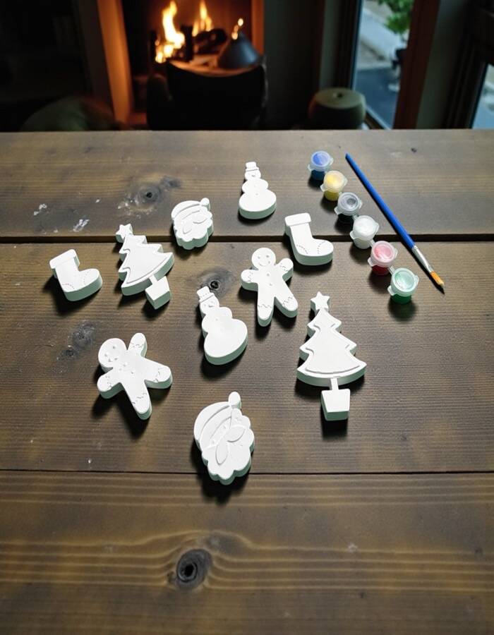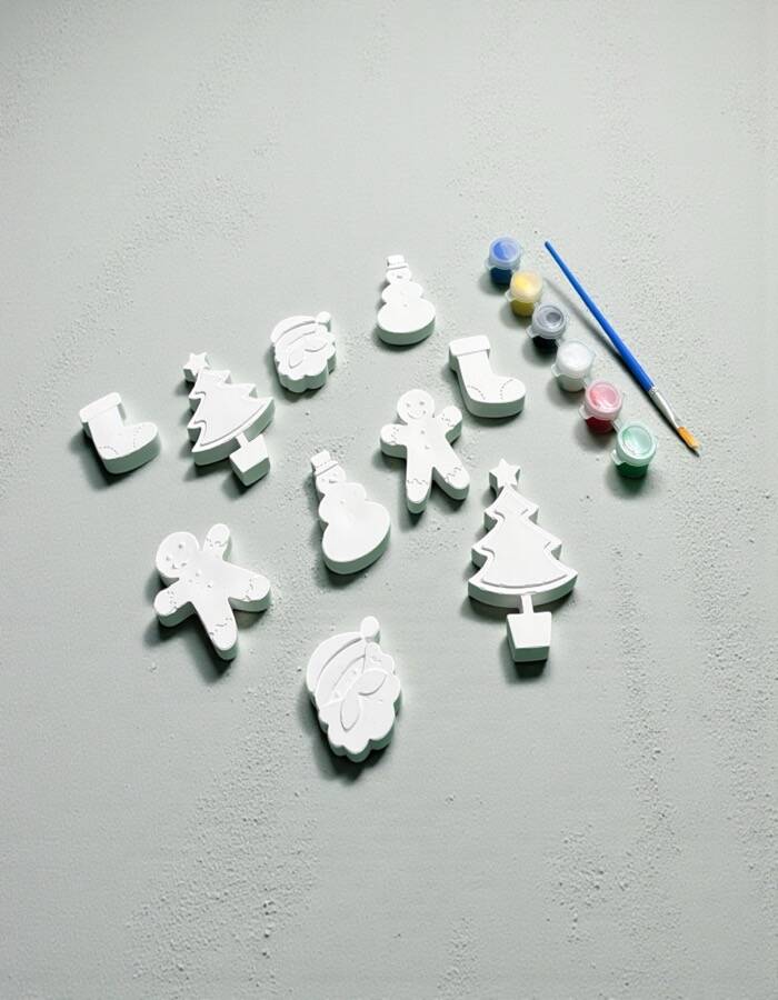 🧱 Taş tozundan üretilmiş 10 adet yılbaşı figürü (çam ağacı, kardan adam, gingerbread, çorap, yılbaşı süsleri vb.)